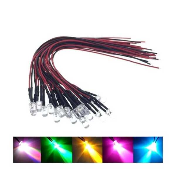 3V 5mm Su Şeffaf RGB Yavaş Flaş LED Gösterge Işığı, 20cm Kablolu Teknik Özellikler