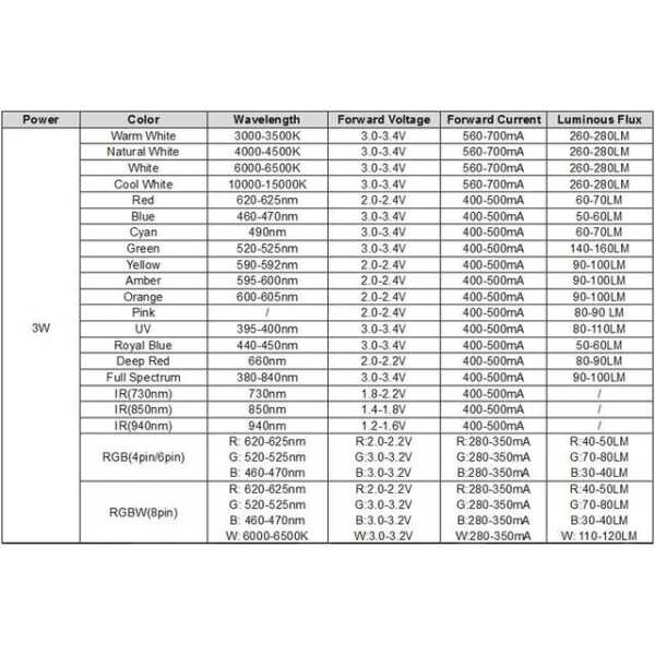 3W 6PIN SMD Yüksek Güçlü LED Ampul RGB 3W 6PIN SMD Yüksek Güçlü LED Ampul RGB Teknik Özellikler
