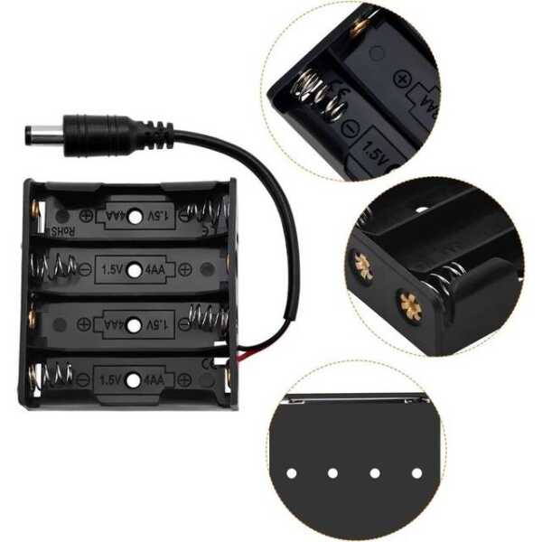 4x AA Pil Tutucu Kutusu, SM Erkek Fişli, Kapaksız Sırt Sırta 4x AA SM Erkek Fişli Pil Tutucu Kutusu Kapaksız Sırt Sırta Uygulamaları