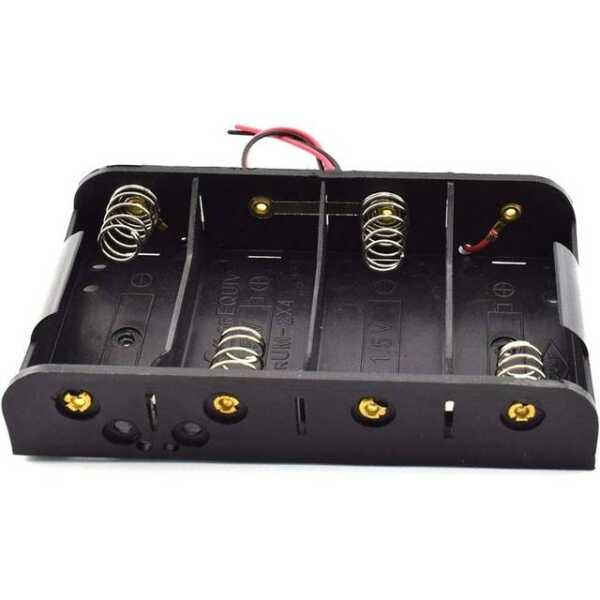 The 4x LR14 Battery Holder Box accommodates four LR14 batteries and is designed without a cover for versatile use. This holder provides a practical solution for applications requiring multiple LR14 batteries.