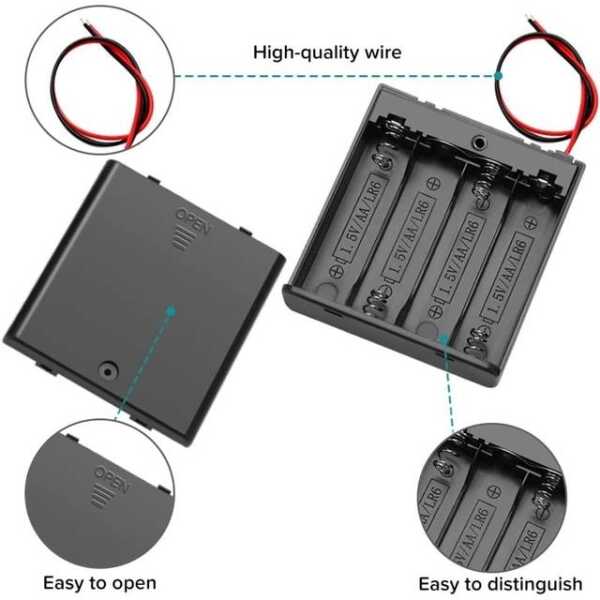 4x LR20 Pil Tutucu Kutusu, 4 adede kadar LR20 pili tutacak şekilde tasarlanmıştır ve için delikli bir kapağa sahiptir. kolay kablolama. Bu tutucu, çeşitli elektronik cihazlara ve projelere güç sağlamak için idealdir.