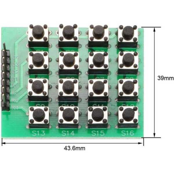 4x4 Matrix 16 Düğme Klavye Modülü, 4x4 ızgara şeklinde düzenlenmiş 16 düğmeden oluşan son derece işlevsel bir tuş takımıdır. Güvenlik sistemleri, kontrol panelleri veya hesap makineleri gibi kullanıcı girişi gerektiren projeler için ideal olan çeşitli mikro denetleyici uygulamaları için kompakt ve verimli bir arayüz sağlar.