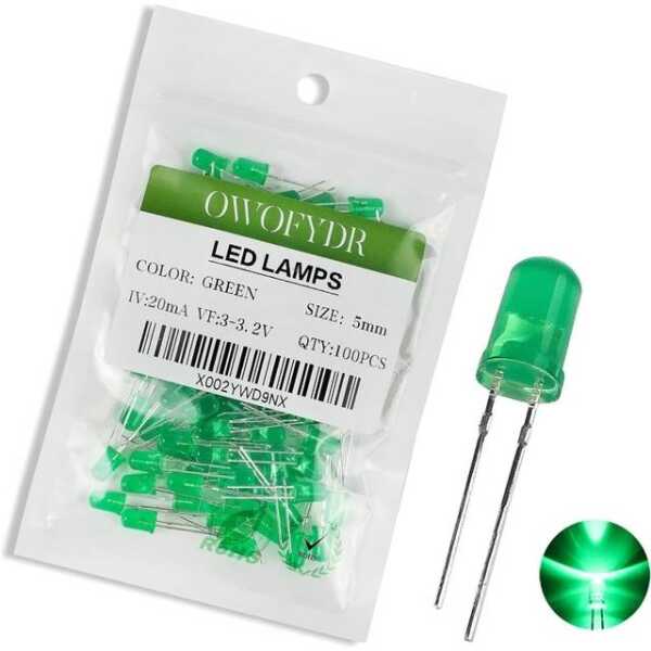 - Boyut: 5 mm LED, 18 mm bacak uzunluğu