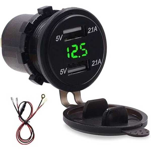 5V 4.2A Su Geçirmez Çift USB Şarjlı Cep Telefonu Şarj Cihazı - Yeşil LED, araçlar, tekneler, motosikletler ve dış mekan kullanımı için tasarlanmış çok yönlü ve dayanıklı bir şarj cihazıdır. Çift USB bağlantı noktası ve birleşik 4,2A çıkışıyla birden fazla cihazın hızlı şarj edilmesini sağlar. Yeşil LED, güç durumunun çekici ve işlevsel bir göstergesini sağlarken, su geçirmez yapısı onu zorlu veya ıslak koşullarda kullanım için ideal hale getirir.