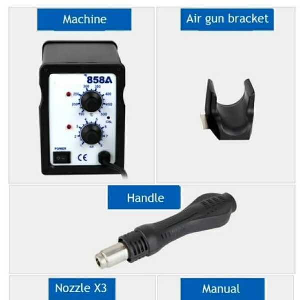858A Sıcak Hava Lehimleme İstasyonu, hassas lehimleme, lehim sökme ve yeniden akıtma uygulamaları için tasarlanmış güvenilir ve verimli bir araçtır. Hassas elektronik bileşenlerden daha sağlam endüstriyel bileşenlere kadar çok çeşitli görevler için ayarlanabilir sıcaklık ve hava akışı kontrolüne sahiptir. Bu istasyon elektronik onarımı, yüzeye montaj teknolojisi (SMT) lehimleme ve Kendin Yap elektronik projeleri için idealdir.