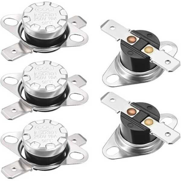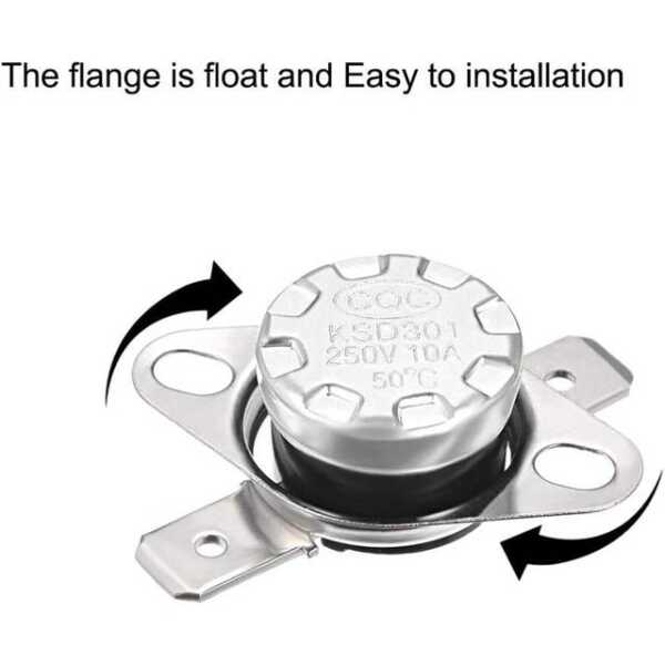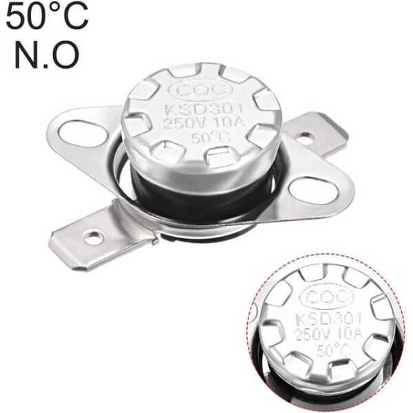 Bakalit KSD301 50 Derece Normalde Kapalı NC Sıcaklık Kontrollü Anahtar Termostatı 50 derecede hassas sıcaklık kontrolü sunar Santigrat. 250V gerilim değeri ve 10A akım kapasitesi ile çeşitli uygulamalarda etkin çalışma sağlar.