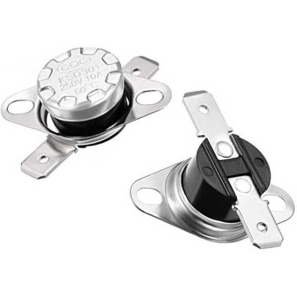 Bakalit KSD301 Sıcaklık Kontrollü Anahtar Termostatı, 60 santigrat derecede etkinleştirilerek hassas sıcaklık yönetimi için tasarlanmıştır. Bu normalde açık (NC) termostat 250V voltajda ve 10A akımda çalışır.