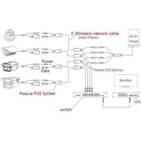 Beyaz 12V PoE Ayırıcı Adaptör Kablosu DC Erkek Fiş Uygulamaları