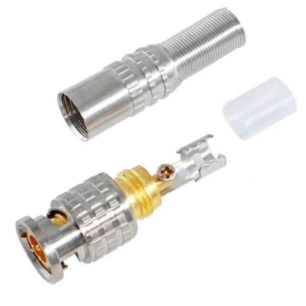 BNC Erkek Konnektör - RG-59, video sinyallerinin iletiminde yaygın olarak kullanılan bir bağlantı elemanıdır. Bu erkek konnektör, özellikle CCTV sistemlerinde, televizyon yayıncılığında ve test ekipmanlarında tercih edilmektedir. BNC konnektörler, hızlı ve güvenilir bağlantı sağlarken, sinyal kaybını minimuma indirir. Dayanıklı yapısı sayesinde uzun ömürlü kullanım sunar ve koaksiyel kablolarla kolayca entegre edilebilir.