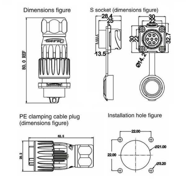 DH-20-C07PE-03-001 7-Pin Su Geçirmez Konnektör - Erkek Teknik Özellikleri
