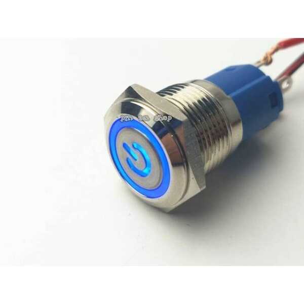 Düz Kafa 16mm 110-220V Su Geçirmez Kendinden Kilitli Metal Basmalı Düğme Anahtarı, Sarı Ledli Işık Özellikleri