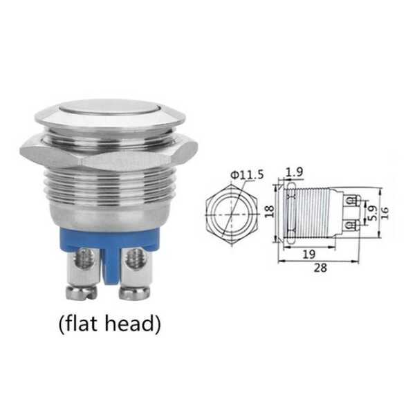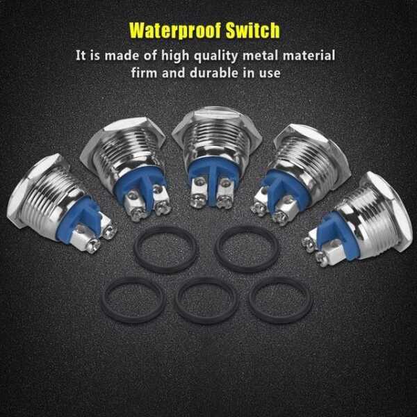 Düz Kafa 16mm 3-6V 5A Su Geçirmez Kendinden Kilitli Metal Düğme Anahtarı Mavi Led Işıklı Düz Kafa 16mm 3-6V 5A Su Geçirmez Kendinden Kilitli Metal Düğme Anahtarı Mavi Led Işık Uygulamaları ile
