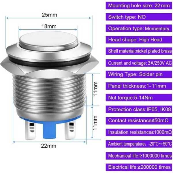 Düz Başlık 22mm 110-220V Su Geçirmez Kırmızı Led Işıklı ve Anahtar Soket Düğmesi Konnektörlü Anlık Kendiliğinden Sıfırlanan Metal Basmalı Düğme Anahtarı Düz Kafa 22mm 110-220V Kırmızı Led Işıklı ve Anahtar Soket Düğmesi Konektörü ile Su Geçirmez Anlık Kendiliğinden Sıfırlanan Metal Buton Anahtarı Özellikleri