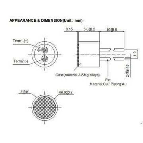 Elektret Kapasitif Mikrofon Kapsülü 6mm Teknik Özellikleri