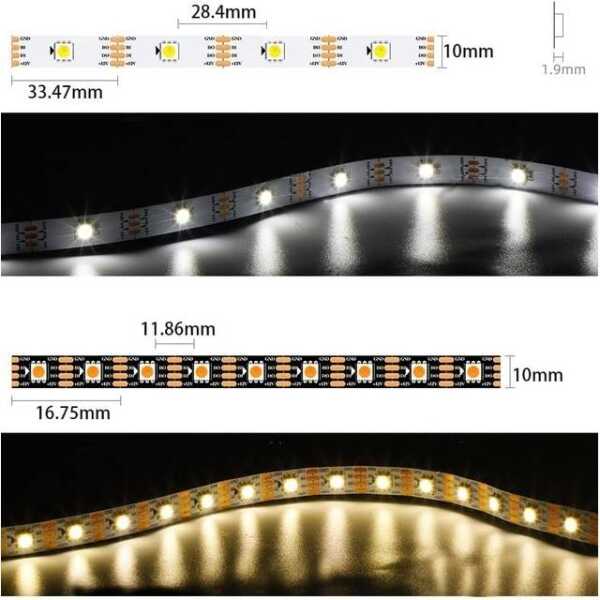 Epoksi 12V WS2815 RGB5050 Beyaz SMD LED Şerit 60 LED/Metre Esnek 5M/Rulo IP65 Özellikleri