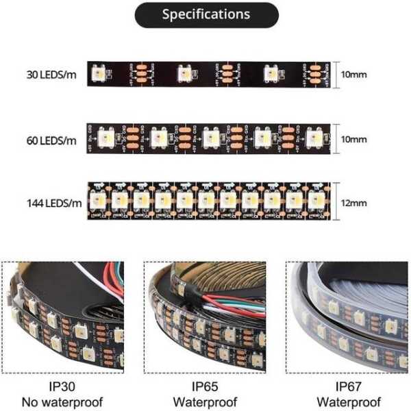 Epoksi 5V SK6812 RGBWW 5050 Beyaz SMD LED Şerit 30 LED/Metre Esnek 5M/Rulo IP65 Özellikleri