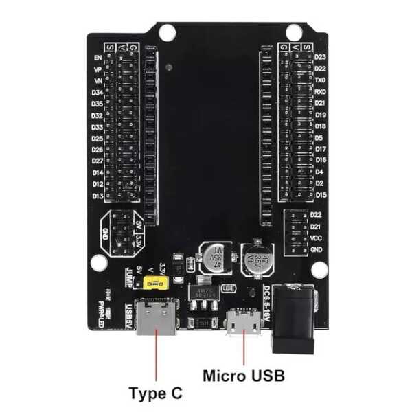 Hem Type-C USB hem de Mikro USB arayüzlerine sahip 30Pin ESP32 Genişletme Kartı, ESP32, ESP-32 ve ESP-32S geliştirme kartları için güçlü bir genişletme çözümüdür. Bu genişletme kartı, ek arayüzler sağlayarak ve çeşitli çevre birimleriyle kolay bağlantıya izin vererek temel ESP32 modülüne ekstra işlevsellik katar. Çift USB arabirimleriyle, güç ve veri aktarımı için Type-C ve Mikro USB bağlantıları arasından seçim yaparak geliştirme sürecinize esneklik kazandırabilirsiniz. Bu kart, birden fazla bağlantı ve arayüz gerektiren gelişmiş IoT uygulamaları ve sistemleri oluşturmak için idealdir.
