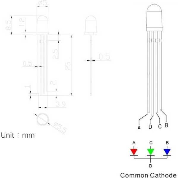 - Boyut: 28 mm bacak uzunluğuna sahip 234 dikdörtgen LED