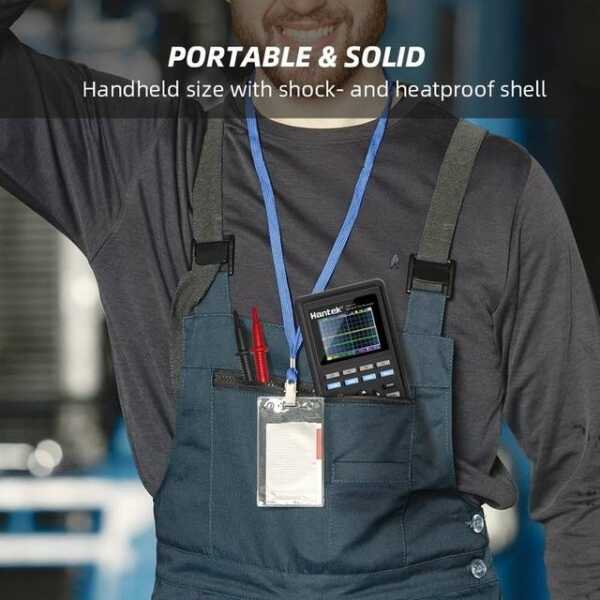Hantek 2D72, 70 MHz osiloskopu, dalga formu jeneratörünü ve multimetreyi tek bir kompakt cihazda birleştiren çok işlevli bir cihazdır birim. Bu sürüm bir pil içerir ve ABD fişli sistemlerle kullanılmak üzere tasarlanmıştır.