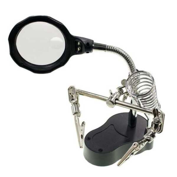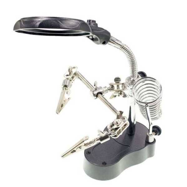 Havya Standı Mercekli Yardımcı El - Işıklı - MG16126-A, elektronik devre ve hassas lehimleme işlemlerinde kullanıcıya büyük kolaylık sağlayan bir üründür. Bu havya standı, mercekli ve ışıklı yapısı sayesinde detaylı çalışmalarda net görüş imkanı sunar. Yardımcı el fonksiyonu, küçük parçaların sabitlenmesini kolaylaştırarak ellerinizi serbest bırakır ve daha güvenli çalışma ortamı sağlar. Özellikle mühendislik ve eğitim projelerinde, elektronik tamir ve montajında vazgeçilmez bir araçtır. Ürünün taşınabilir ve dayanıklı yapısı, uzun süreli kullanım için idealdir.