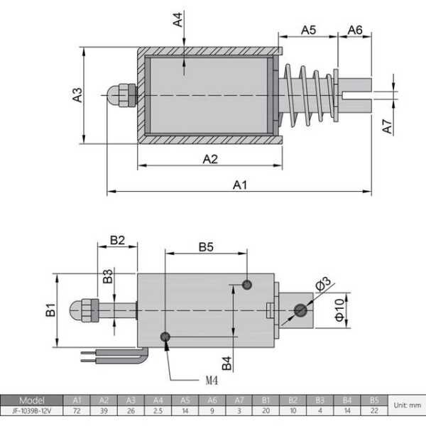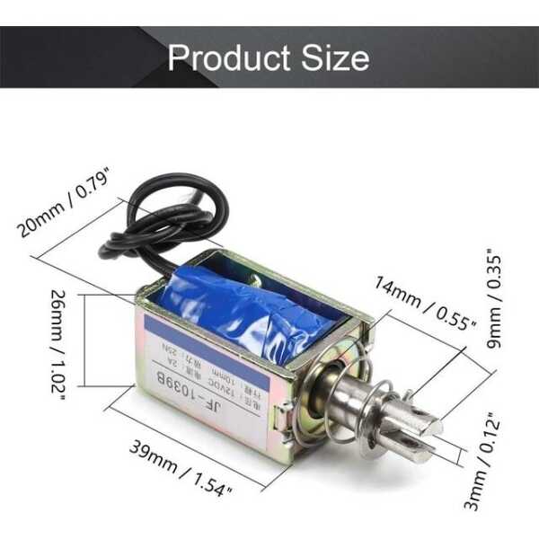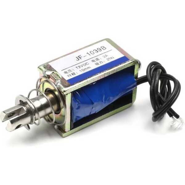 JF-1039B DC12V 25N 10mm İtme-Çekme Geçirgen Elektromıknatıs Kilidi İtme-çekme işlemi gerektiren güvenli sistemler için tasarlanmış güçlü elektromıknatıs. 12V DC beslemeyle güçlendirilmiş olup, 25N kuvvet ve 10 mm strok sağlayarak çeşitli güvenli kilitleme uygulamaları için uygundur.