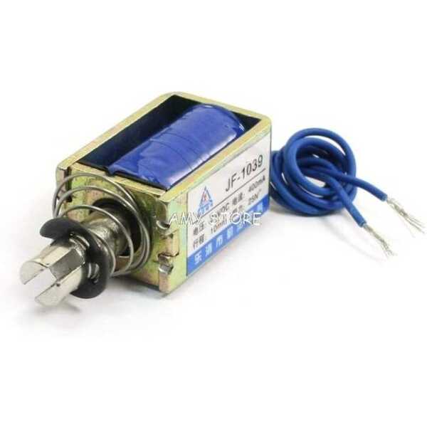 JF-1039B DC6V 25N 10mm İtme-Çekme Geçirgen Elektromıknatıs Kilidi İtme-çekme işlemi gerektiren güvenli sistemler için tasarlanmış yüksek verimli kilitleme mekanizması. 6V DC beslemeyle çalışarak 10 mm strok ile 25N kuvvet sağlar, bu da onu düşük voltajlı güvenli uygulamalar için ideal kılar.