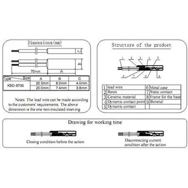 KSD9700/BK05-BB1D 5A 250V Plastik Sıcaklık Kontrol Anahtarı - 100C Normalde Açık KSD9700/BK05-BB1D 5A 250V Plastik Sıcaklık Kontrol Anahtarı - 100C Normalde Açık Özellikleri