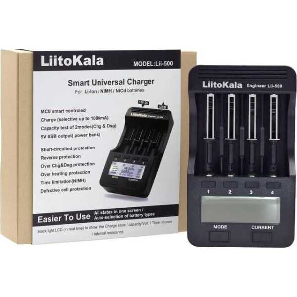 LiitoKala Lii-500, çeşitli pil boyutlarını destekleyen çok işlevli bir pil şarj cihazıdır 18650 ve 26650 dahil. Geniş bir LCD ekrana ve USB 5V çıkışına sahiptir, bu da onu pil yönetimi için çok yönlü bir araç haline getirir.