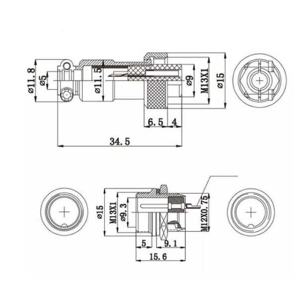 Mike Konnektör 5-Pin 12mm - Erkek Teknik Özellikleri