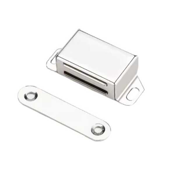 Mıknatıslı metal mobilya kapak kilidi 36x24x14mm - Krom, mobilyalarınız için mükemmel bir güvenlik çözümü sunar. Bu kilit sistemi, mıknatıs teknolojisi sayesinde kapakların sıkıca kapanmasını sağlayarak, istenmeyen açılmaların önüne geçer. Dayanıklı metal yapısı ile uzun ömürlü kullanım sunarken, estetik krom kaplaması ile mobilyalarınıza şık bir görünüm kazandırır. Genellikle dolaplar, çekmeceler ve çeşitli mobilya kapaklarında kullanılır.