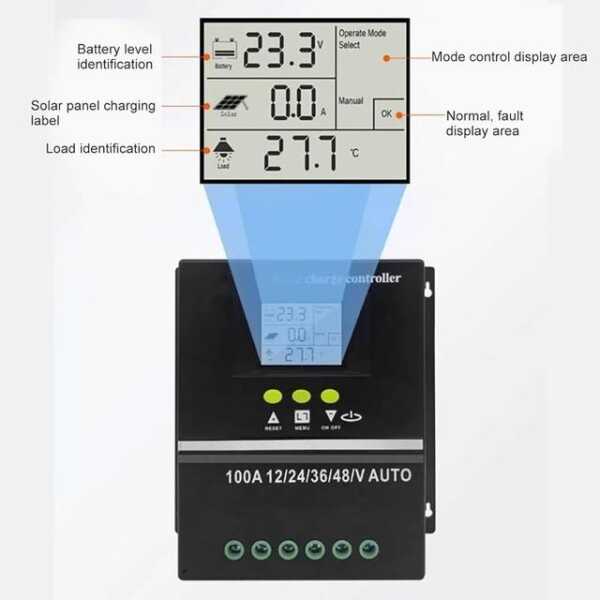 MPPT 100A 12V/24V/36V/48V/60V Solar Şarj Kontrol Cihazı - Çift USB - LCD Ekran - Otomatik Güneş Pili Şarj Cihazı - Alüminyum Plakalı Şarjlı Regülatör Özellikleri