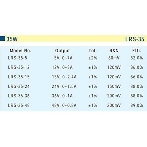 The Original Taiwan MEAN WELL LRS-35-12 Power Supply offers a 12V output with 35W of power. It is compact and efficient, designed for industrial and general power applications where space and reliability are critical.