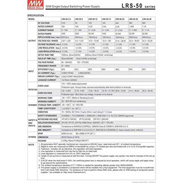 Orijinal Tayvan MEAN WELL LRS-50-12 Orijinal Güç Kaynağı Taiwan MEAN WELL LRS-50-12 Güç Kaynağı Özellikleri