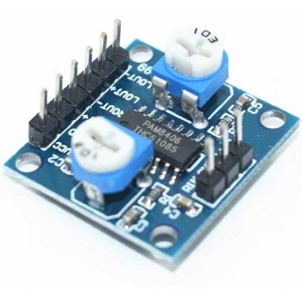 PAM8406 Dijital Amplifikatör Modülü, stereoda kanal başına 5W sağlama kapasitesine sahip, yüksek performanslı bir ses amplifikatörüdür. Hassas ses kontrolü için bir ses potansiyometresine sahiptir, bu da onu çeşitli ses projeleri için ideal kılar.