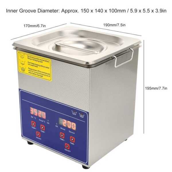 Paslanmaz Çelik Ultrasonik Temizleme Makinesi PS-10A 2L 40KHz 60W US Plug 110V Özellikleri