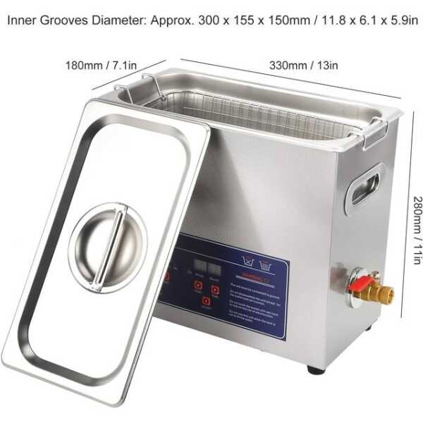 Paslanmaz Çelik Ultrasonik Temizleme Makinesi PS-30A, 6,5L kapasiteli ve 180W ultrasonik güce sahip, yüksek verimli bir temizleme cihazıdır. Birleşik Krallık fişiyle 220V'ta çalışan bu cihaz, hassas ve karmaşık öğelerdeki kiri, yağı ve kirletici maddeleri temizlemek için ultrasonik dalgalar kullanır. Dayanıklı paslanmaz çelik yapısı, uzun süreli güvenilirlik sağlayarak profesyonel ve ev kullanımı için idealdir.