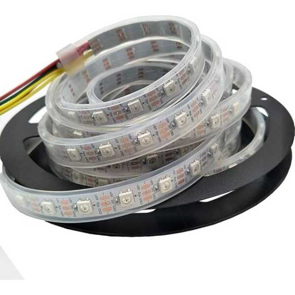 Plastik Kapaklı WS2812B SMD LED Şerit 60 LED/Metre Esnek 5M/Rulo Su Geçirmez 5V IP67 canlı, özelleştirilebilir aydınlatma efektleri oluşturmak için tasarlanmış yüksek kaliteli, dayanıklı bir LED şerittir. Her WS2812B LED'i ayrı ayrı adreslenebilir ve karmaşık renk desenlerine ve dinamik aydınlatma ekranlarına olanak tanır. Şeritte LED'ler için ek koruma sağlayan plastik bir kapak bulunurken, IP67 su geçirmezlik derecesi onu dış mekan kullanımına uygun hale getirerek toza ve suya dayanıklılık sunar. 5V ile çalışan bu esnek şerit, ev aydınlatma kurulumlarından profesyonel ekranlara ve dış mekan dekorasyonlarına kadar çeşitli ortamlara kolayca kurulabilir.