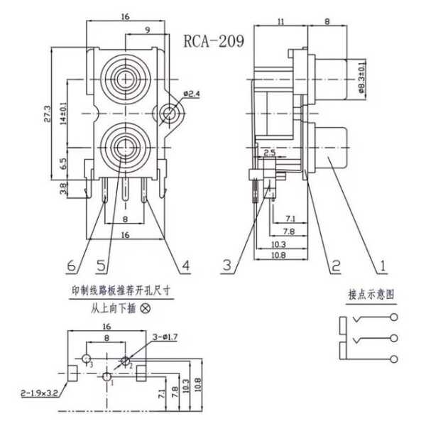 RCA-209 3.5mm Stereo RCA Jack Dişi - PCB Tip Teknik Özellikleri
