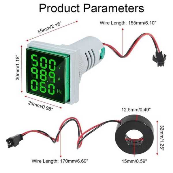 Sarı 0-100A 22mm AD16-22FSA Kare Kapaklı Trafolu LED Ampermetre Gösterge Işığı Uygulamaları