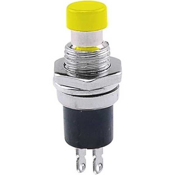 Sarı PBS-110 2 PIN 7mm Dişli Anlık Basmalı Düğme Anahtarı, Normalde Kapalı (NC) basma işleviyle anlık kontrol için tasarlanmıştır. Kendi kendini sıfırlama özelliği, düğmenin basıldıktan sonra orijinal durumuna dönmesini sağlayarak hızlı kontrol uygulamaları için idealdir.