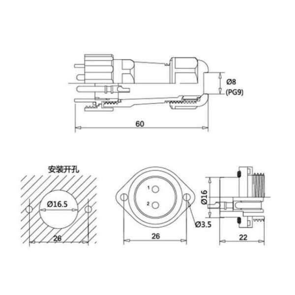 SD16 9 Pin 16mm Su Geçirmez Konnektör Takımı - Flanşlı Panel Tipi Teknik Özellikleri