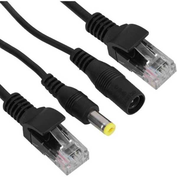 Siyah 12V Standart Dışı POE Su Geçirmez Enjektör Adaptör Kablosu, Ethernet üzerinden güç enjekte ederken aynı zamanda su geçirmezlik işlevselliği sağlamak üzere tasarlanmış bir DC Dişi Fişle birlikte gelir. dış mekan uygulamaları.