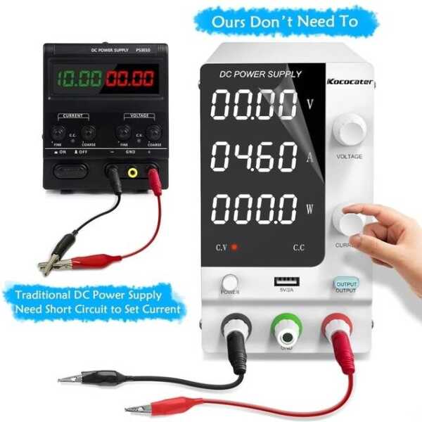 Siyah SPPS-B305D, çift düğmeli hassas kontrol sunar 30V ve 5A ayarlanabilir çıkışa izin veren düğme tasarımı, çeşitli elektronik uygulamalar için idealdir.