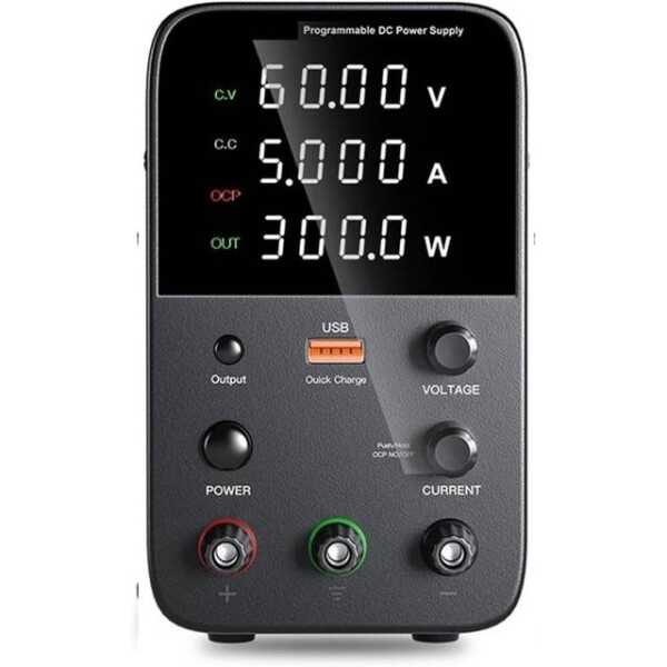Siyah WPS605H, 110V ABD fişi için tasarlanmış, 60V'a kadar ayarlanabilir voltaja ve maksimum 5A akıma sahiptir. uygulamalar.