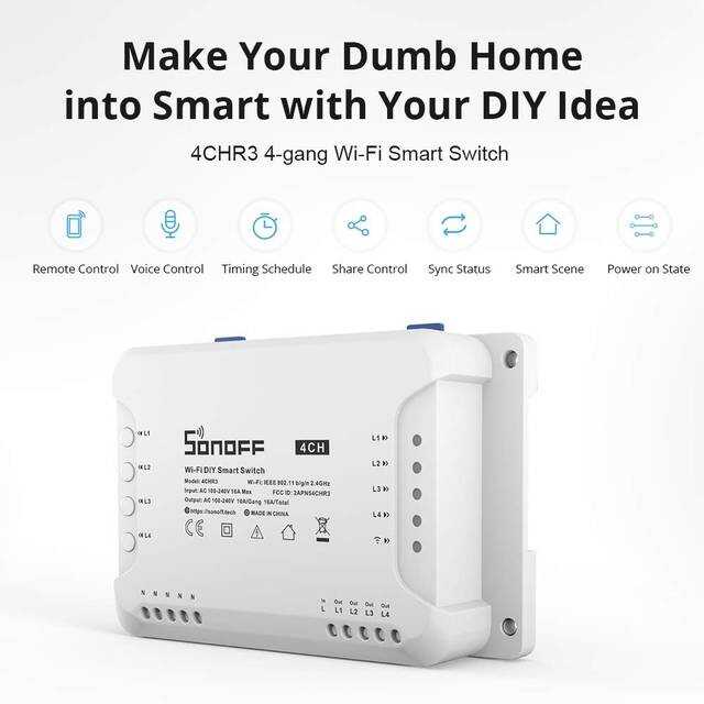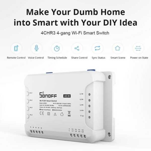 Sonoff 4CH R3'ün bu yükseltilmiş sürümü, gelişmiş WiFi bağlantısı ve daha istikrarlı performans gibi gelişmiş özellikler getiriyor. Cihazları eWeLink uygulaması veya sesli komutlar aracılığıyla kolayca kontrol ederek evinizi daha akıllı ve kullanışlı hale getirebilirsiniz.