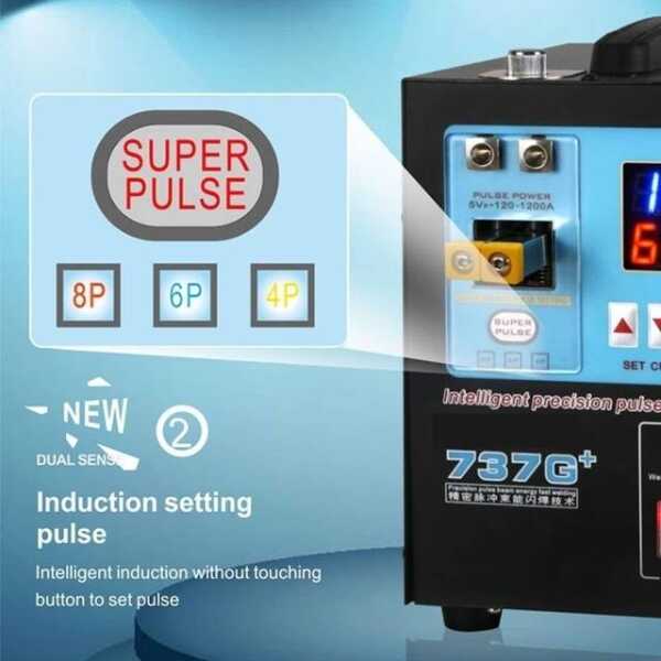 AU'lu SUNKKO 737G Çift Darbeli Çift Ekranlı Pilli Nokta Kaynak Makinesi plug (220V), hassas akü paketi kaynağı için tasarlanmış güçlü ve çok yönlü bir punta kaynak aletidir. Çift darbe teknolojisi ve çift dijital ekranıyla bu makine, 18650 ve diğer akü konfigürasyonları için tutarlı ve güvenilir kaynaklar sağlar. Kullanımı kolay tasarımı, onu hem profesyoneller hem de DIY meraklıları için mükemmel kılar.