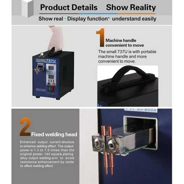 AU fişli (220V) SUNKKO 737U 18650 Lityum Pilli Nokta Kaynak Makinesi, özel bir kaynak makinesidir. 18650 akü paketlerinin hassas montajı için tasarlanmış kaynak makinesi. Gelişmiş darbeli kaynak teknolojisine sahip olan bu makine, güçlü ve tutarlı kaynaklar sunarak pil üretimi ve küçük metal kaynak işleri için idealdir. Kullanıcı dostu arayüzü ve ayarlanabilir ayarları, hem profesyonel hem de DIY kullanıcıları için verimli çalışma sağlar.
