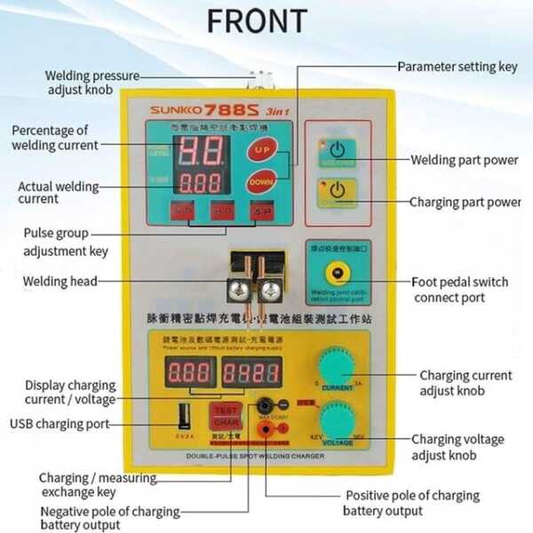 İngiltere fişli (220V) SUNKKO 788S Lityum Pil Kaynak Makinesi, yüksek hassasiyetli kaynak için tasarlanmıştır. 18650 hücre gibi lityum pil paketleri. Çift darbe teknolojisine sahip olup güçlü ve doğru kaynaklar sağlar, bu da onu akü montajı ve diğer küçük metal kaynak işleri için mükemmel kılar. Ayarlanabilir ayarlar ve kullanıcı dostu arayüz, hem profesyoneller hem de DIY kullanıcıları için güvenilirlik sağlayarak optimum kontrol ve performans sağlar.