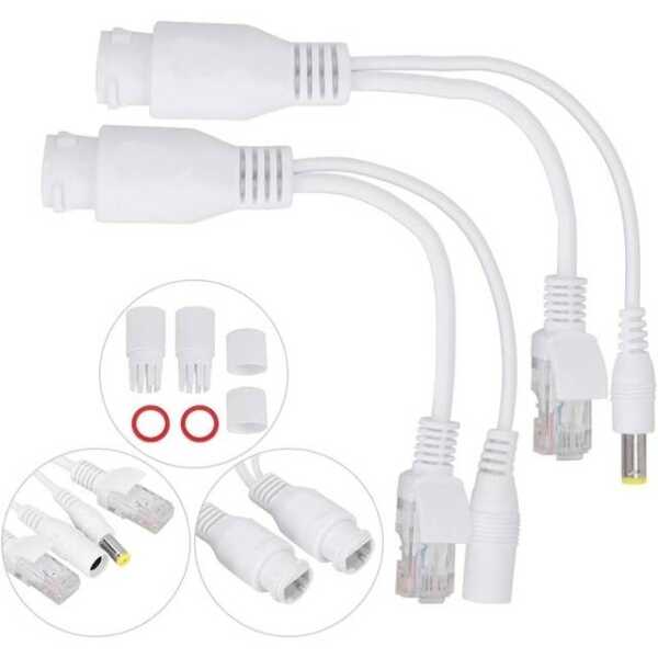1 Çift Beyaz 12V Standart Olmayan POE Su Geçirmez Ayırıcı Adaptör Kablosu RJ45 DC5.5x2.1 Özellikleri