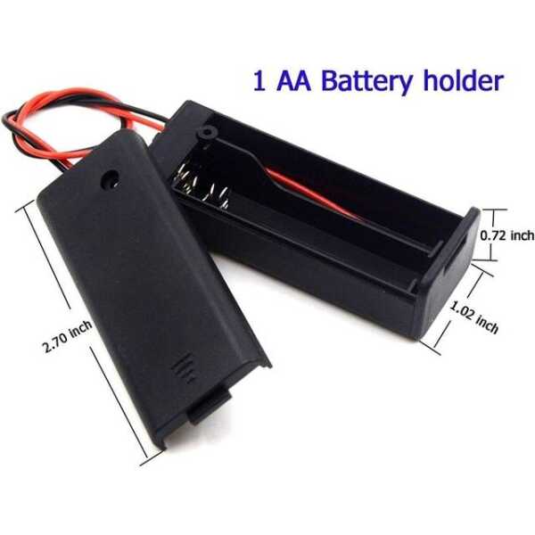 1x AA Pil Tutucu Kutusu, tek bir AA pili tutacak şekilde tasarlanmıştır ve yerleşik bir anahtar ve kapak içerir. kapak. Bu tasarım, pilin kolayca değiştirilmesine ve güç kaynağının kontrol edilmesine olanak tanır.